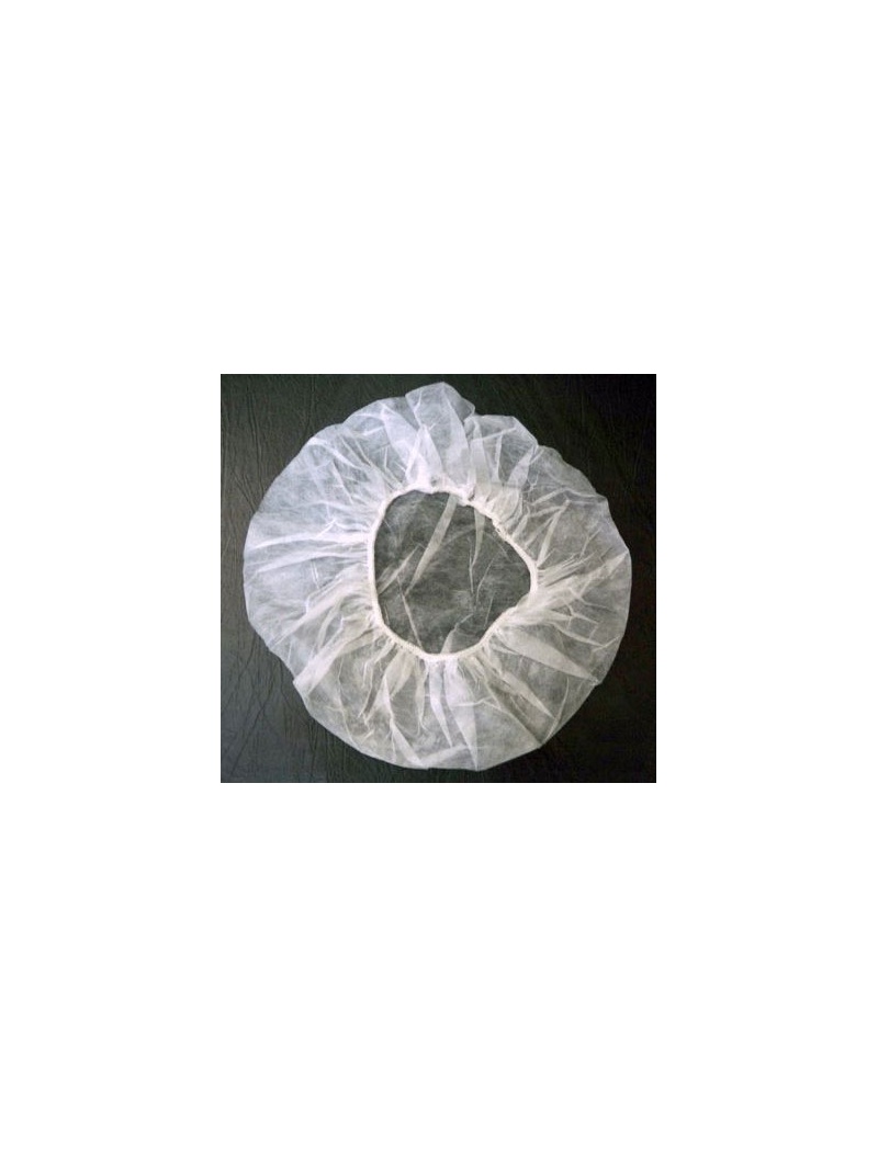 Čepice z netkané textílie v bílé barvě. Čepice z netkané textílie se používá při kosmetickém oštření tváře, krku a dekoltu, aby si tak zákazníci chránili své vlasy.