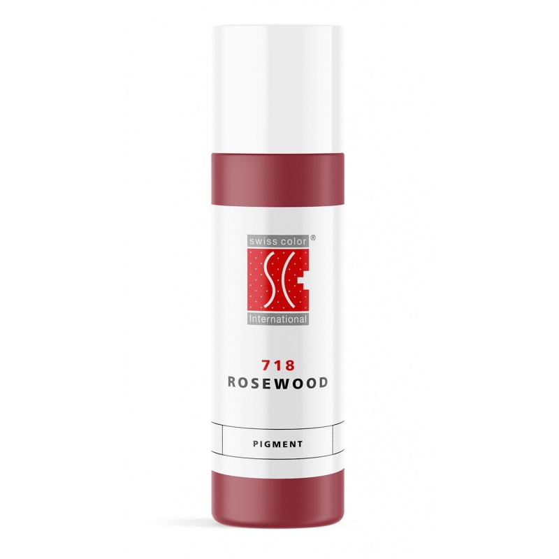 V čistém stavu se perfektně hodí pro pigmentaci rtů a dvorců rtů. Po smíchání s pigmentovým roztokem 901 vytváří jemné, přirozené zvýraznění rtů a živý akvarelový efekt. Jako základní tón se 718 Rosewood hodí ke každému typu pleti a je jedním z nejoblíbenějších odstínů mezi lékařskými dermapigmentology pro pigmentaci dvorců rtů. Přidáním odstínů 406 Ruby Red nebo 410 Royal Plum lze odstín elegantně intenzivnější a zjemnit.
