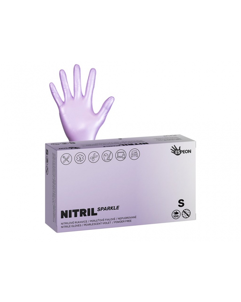 Espeon Rukavice nitrilové SPARKLE 4,0 g nepudrové perleťově fialové S 100 ks